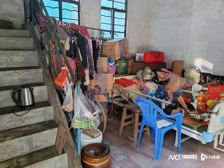 走进莫婆婆家中,只见家居简陋、杂物堆积,生活窘迫。莫婆婆今年85岁,肢体四级残疾,属于高龄失能老人;其子阿培今年52岁,精神一级残疾。